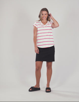 Manly Vee Stripe T-Shirt - Pink/White Stripe