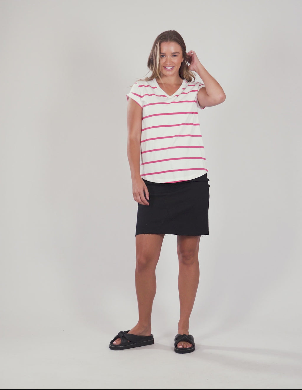 A simple vee neck tee with a short sleeve and roll back cuff