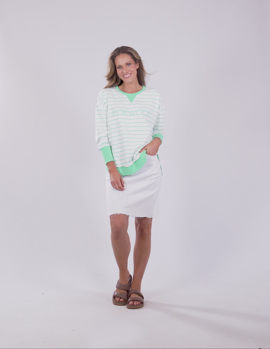 Stay cozy and stylish with the Simplified Striped Crew in Neon Mint. Its clean, streamlined design features bold stripes that add a vibrant pop to any outfit. Perfect for everyday wear, this sweatshirt combines comfort with eye-catching color to keep you looking fresh and confident all day.