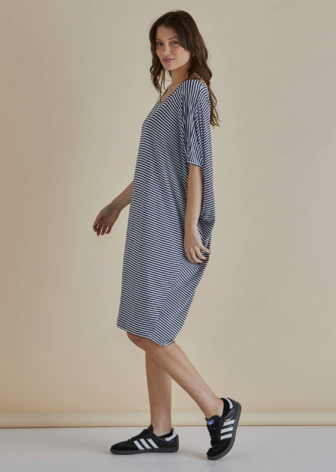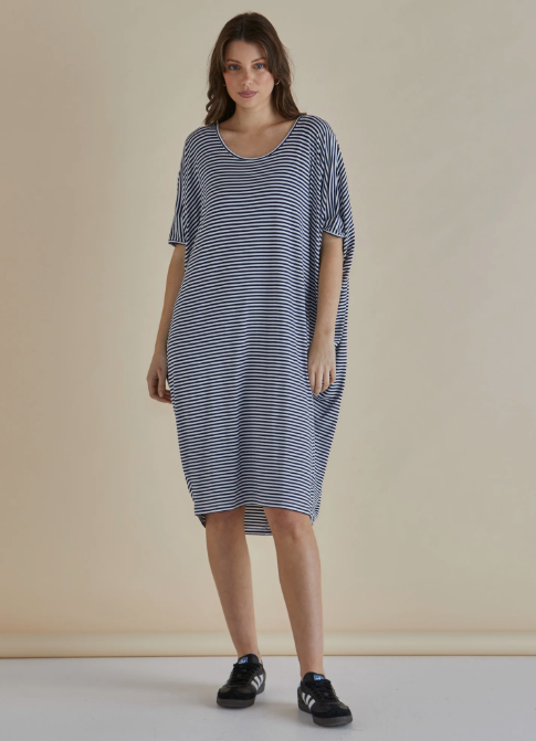 Maui Tee Shirt Dress - Navy Blue/White Stripe