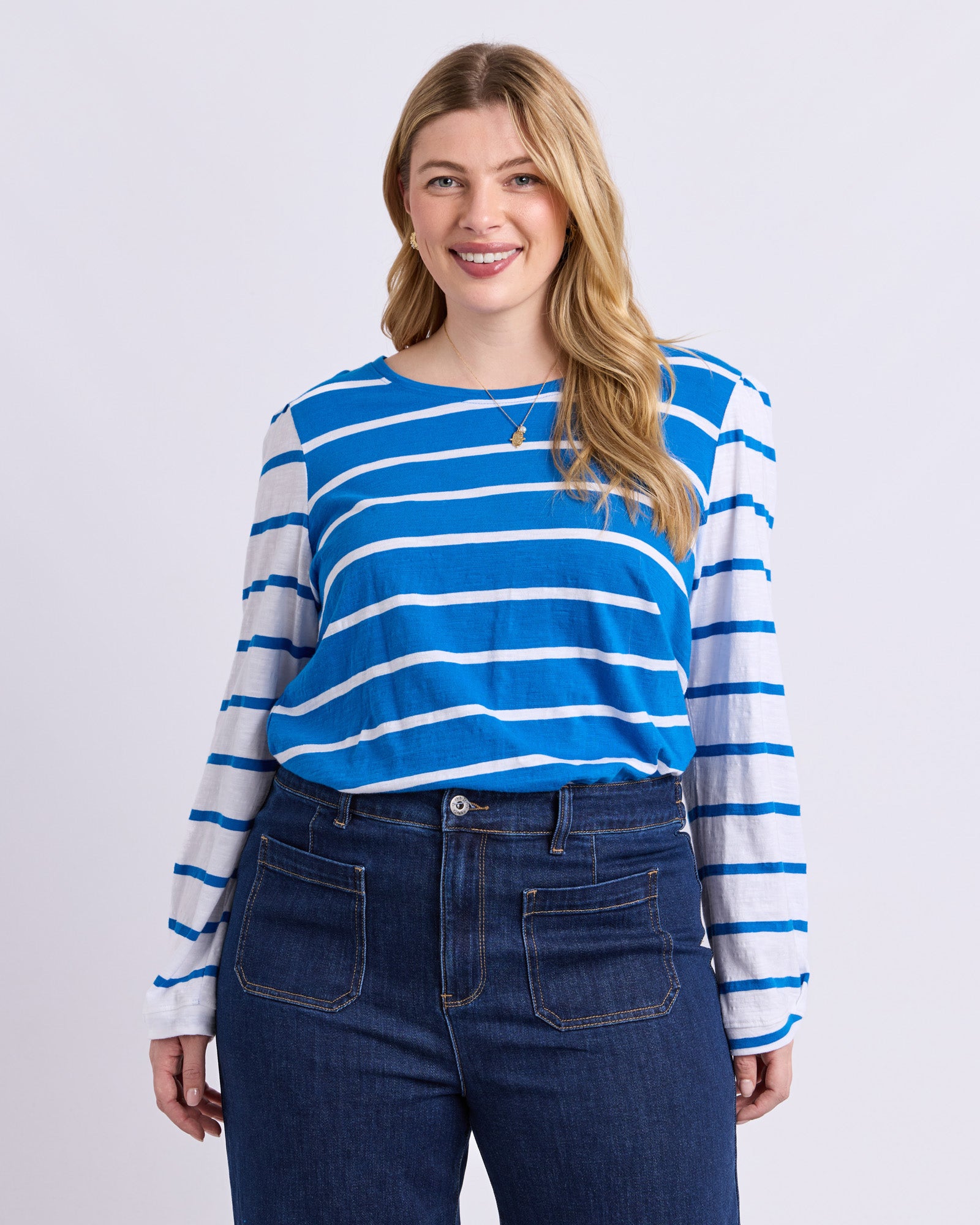 Baia Long Sleeve Tee - Royal And White Stripe