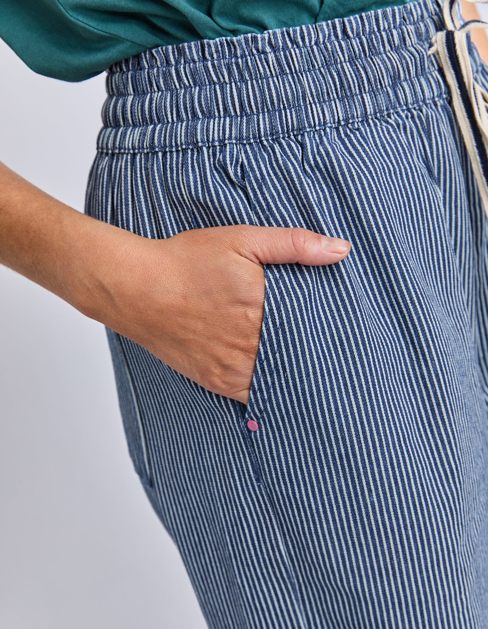 The Elm Julia Pinstripe Denim Pant blends classic detailing with contemporary style. Featuring a flattering cropped length and on-trend wide leg silhouette, these denim pants are finished with a timeless pinstripe for added interest. Easy to dress up or down, they're a standout piece for effortless everyday wear.