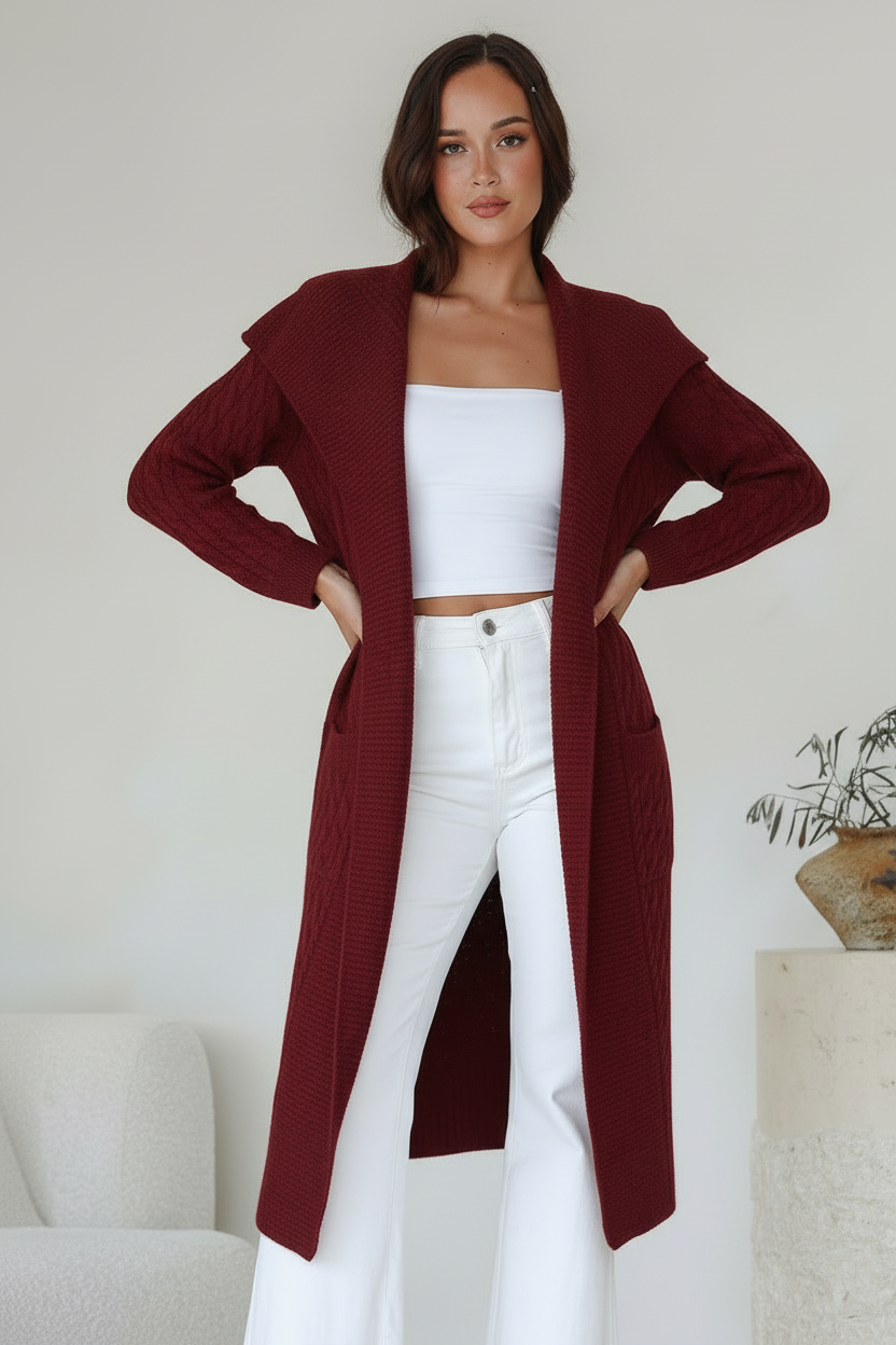Shawl Collar Coatigan - Wine