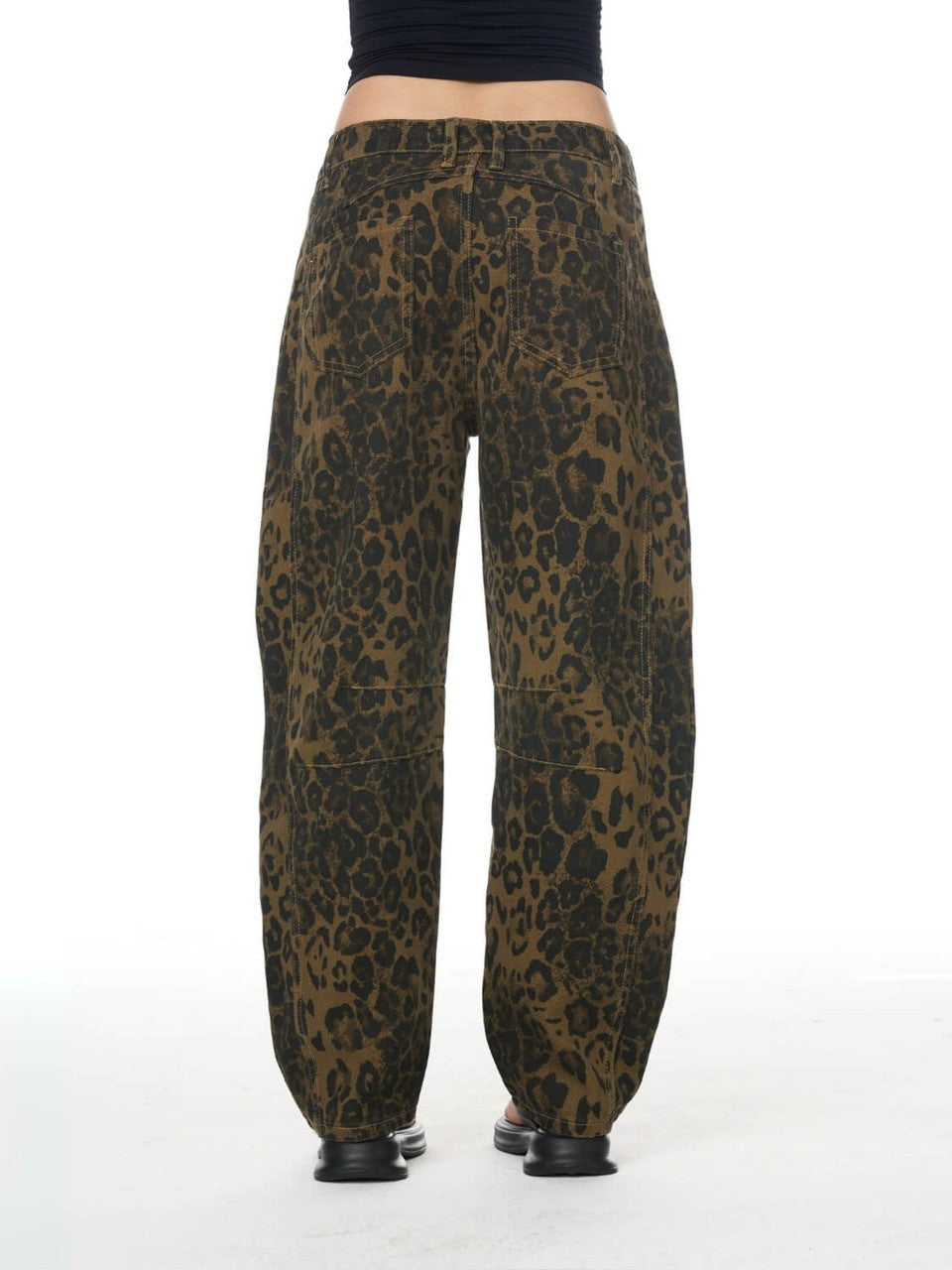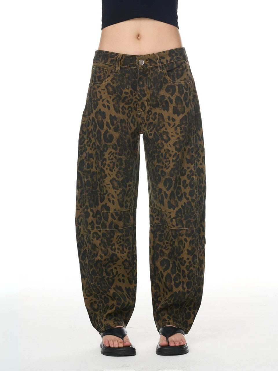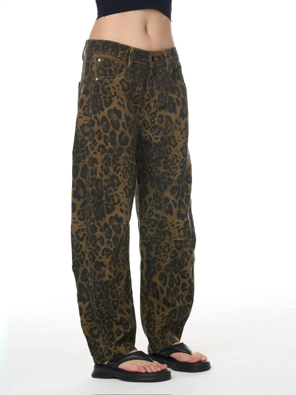 Step out in style with these Leopard Barrel Jeans, featuring a flattering full-length cut that elongates your legs. Designed with a comfortable waistband and secure zip front, they combine ease with a sleek fit. The bold leopard print adds a trendy, eye-catching touch to your everyday wardrobe, making these jeans perfect for turning heads wherever you go. Elevate your casual look effortlessly with this must-have statement piece