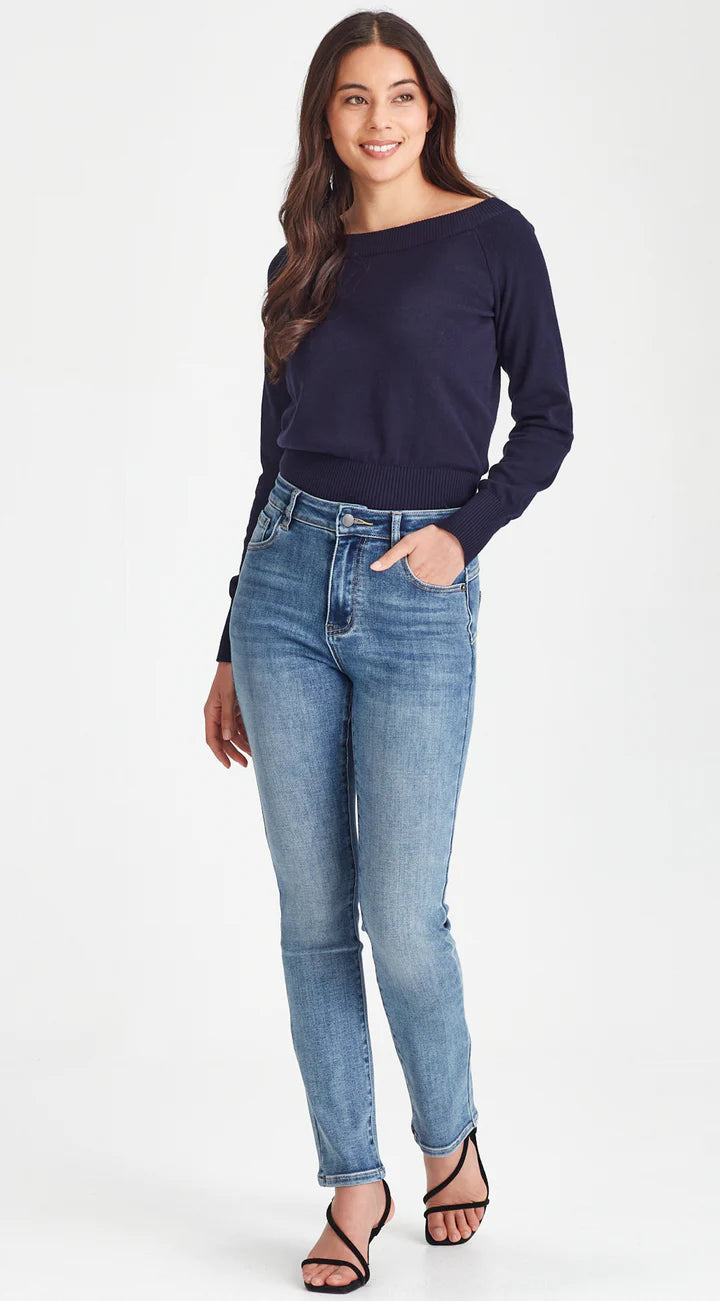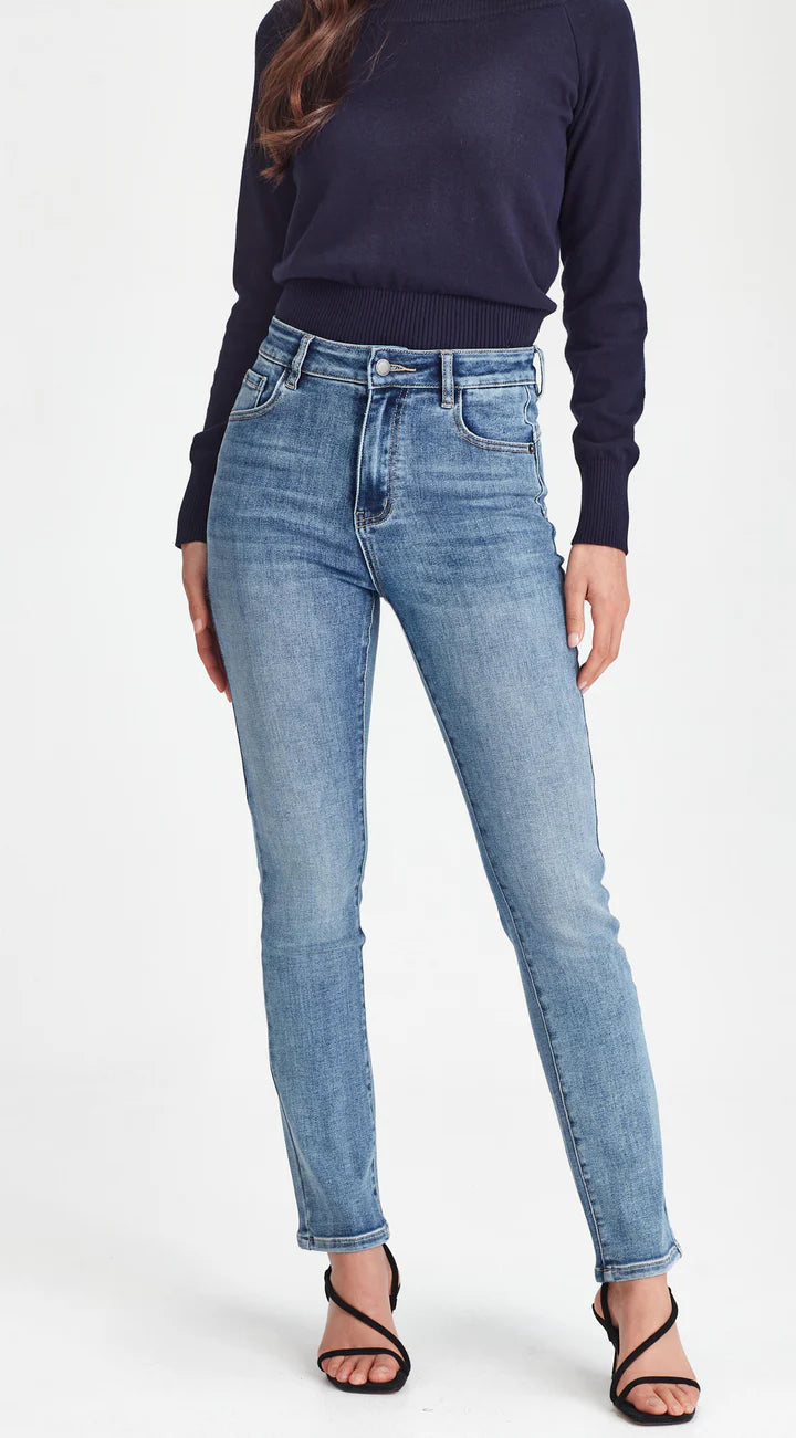 Mid to high waisted straight leg jean. NEW SHORT LENGTH