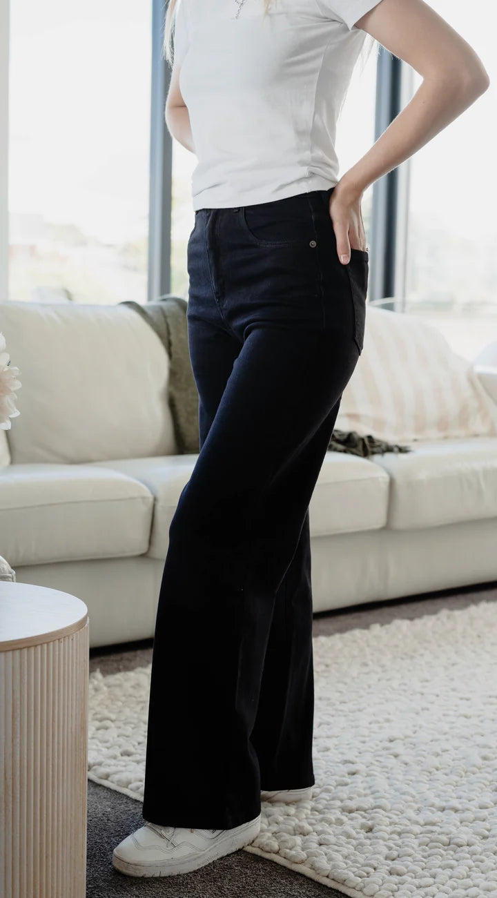 Ruby May Short Stuff is a classic cut, high waisted straight leg jean that is more fitted to the body and relaxed in the leg. Super comfortable with a soft stretch fabric. Fixed waist band with belt loops, zip fly, 94% cotton, 5% polyester, 1% spandex. Faux front pockets to maintain a smooth line through the hips & waist.