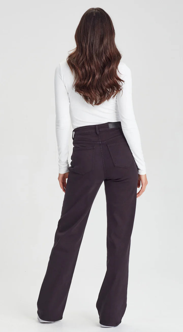 High waisted, shorter length straight leg jean in a soft stretch fabric.
