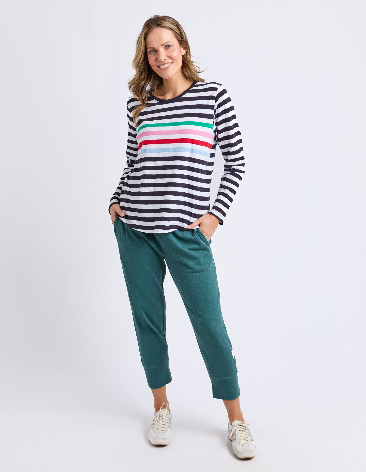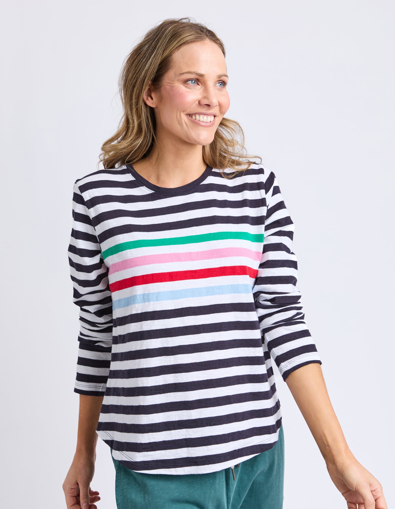 The Elm Harmony Long Sleeve Tee is an easy everyday essential featuring yarn-dyed stripes and a flattering scooped hemline. Crafted from soft cotton slub jersey with a relaxed fit, it’s perfect for effortless layering. Style with relaxed pants or denim for everyday comfort