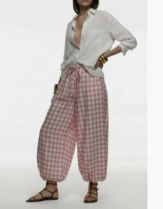 Havana Drawstring Balloon Pants - Blush Gingham