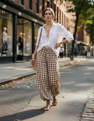 Havana Drawstring Balloon Pants - Chocolate Gingam