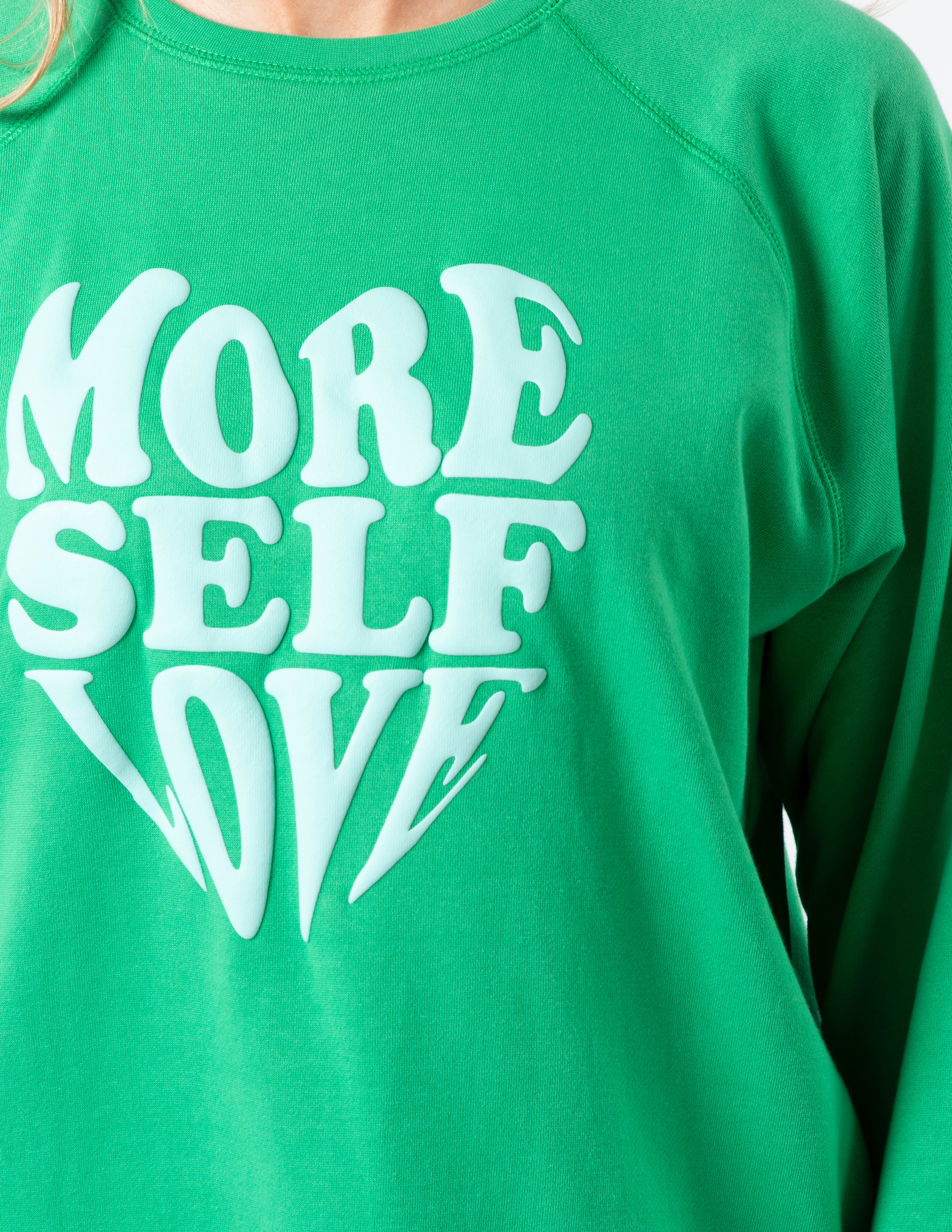 Wrap yourself in comfort and intention with this emerald crew neck sweatshirt, featuring an inspiring "More Self Love" logo on the front. Perfect for everyday wear, this cozy layer reminds you to prioritize yourself while looking effortlessly put-together. The soft fabric and classic silhouette make it a versatile wardrobe essential that pairs beautifully with anything. Wear it as a gentle daily affirmation that self-care matters.