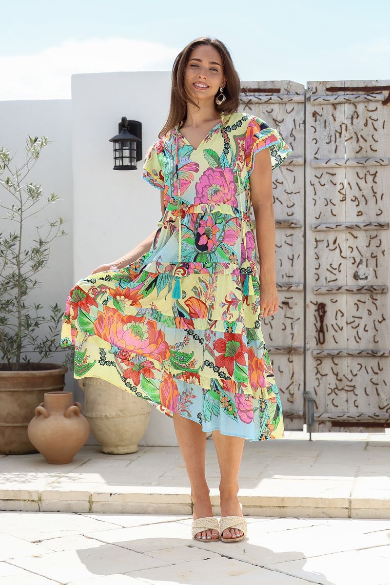Embrace effortless elegance with this charming tiered midi dress, featuring delicate ruffled short sleeves that add a playful touch. Soft pastel tones create a dreamy aesthetic perfect for spring gatherings, garden parties, or casual weekend outings. The cascading tiered layers through the body create beautiful movement and dimension, flattering every silhouette while keeping you comfortable. This versatile piece transitions seamlessly from day to night, making it an essential addition to any wardrobe. Discover why tiered designs are having a moment—they're feminine, forgiving, and undeniably gorgeous.