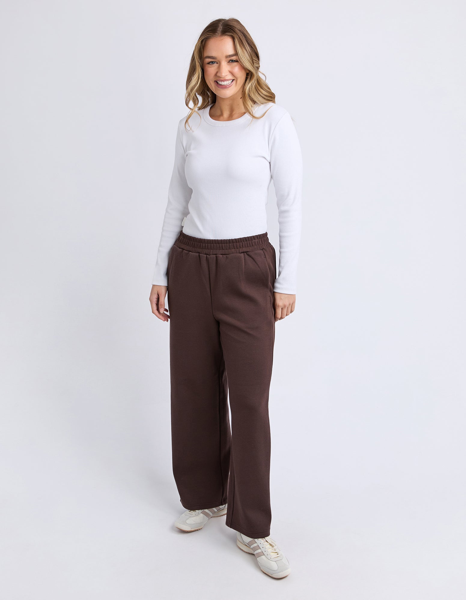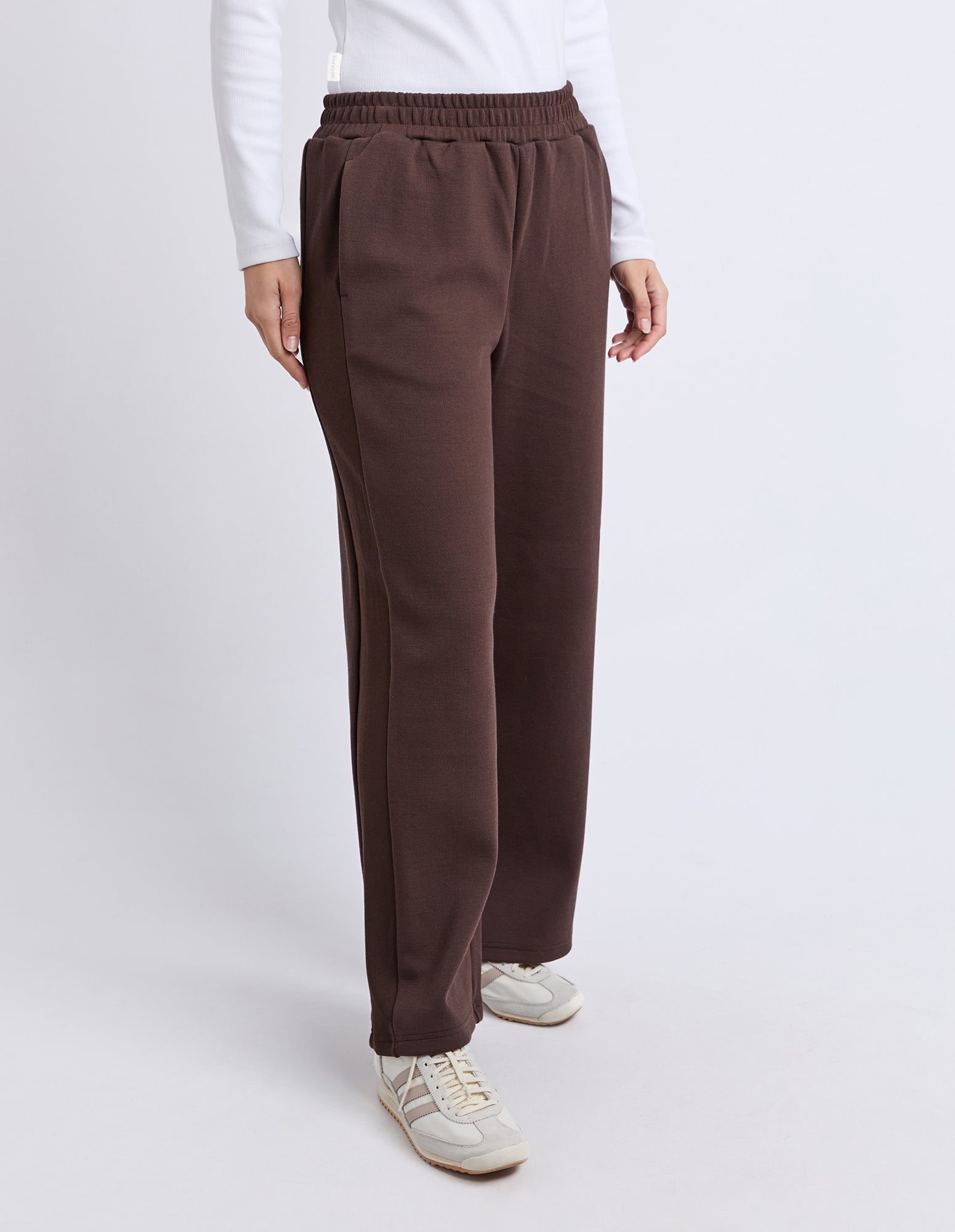 The Harper Trackpant is a comfortable everyday staple with a clean, modern feel. Designed with an elastic waist and contrast rib side panels, they offer an easy, relaxed fit that moves with you. Finished with practical side pockets and a straight leg shape, they’re perfect for off-duty days and casual outings