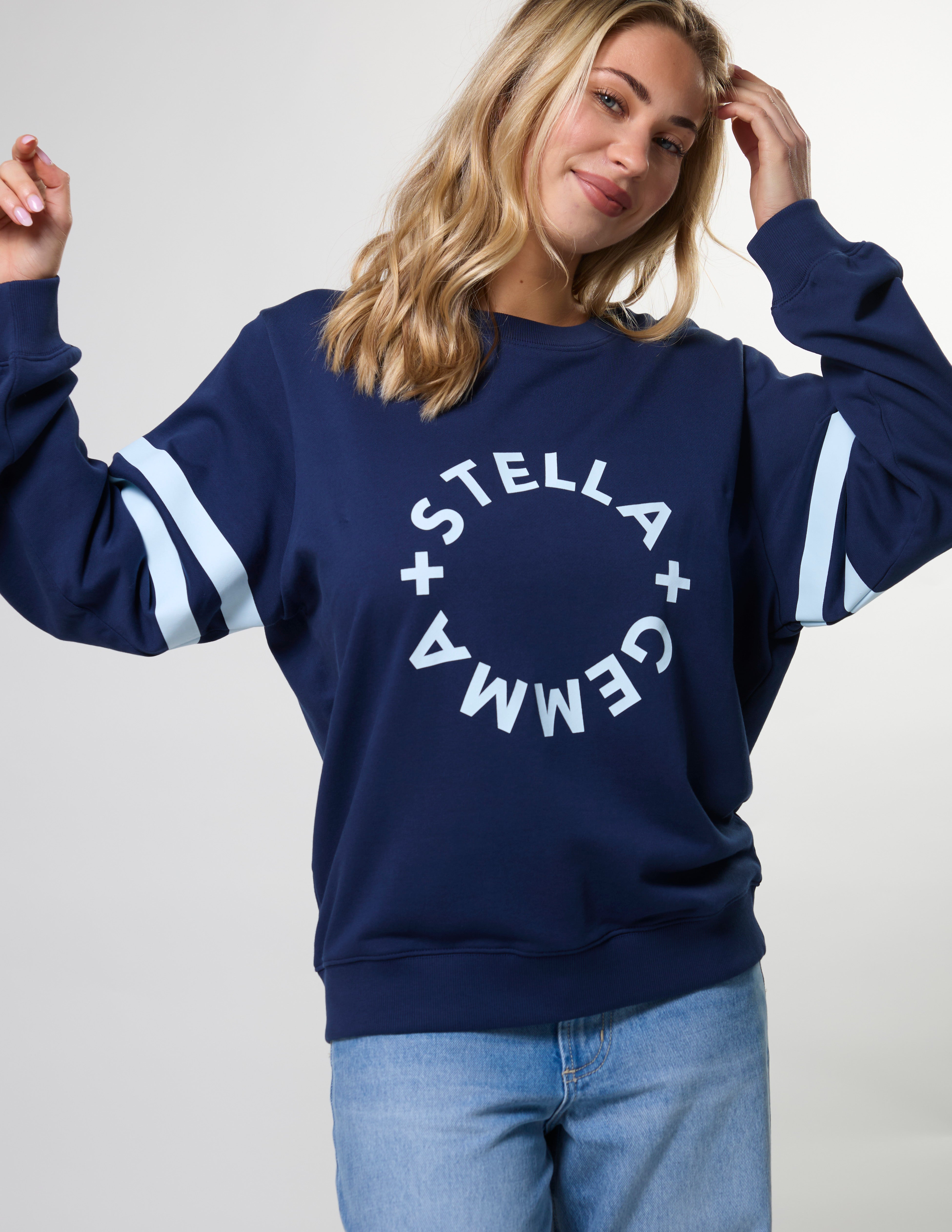 Effortless comfort meets timeless style with this essential sweatshirt. Featuring the iconic Stella+Gemma branding on the front and eye-catching stripes running down the sleeves, it's a versatile piece that works for any occasion. The relaxed fit ensures all-day wearability without compromising on shape, making it perfect for layering or wearing solo. In a rich winterberry tone, this sweatshirt is the go-to layer you'll reach for again and again.