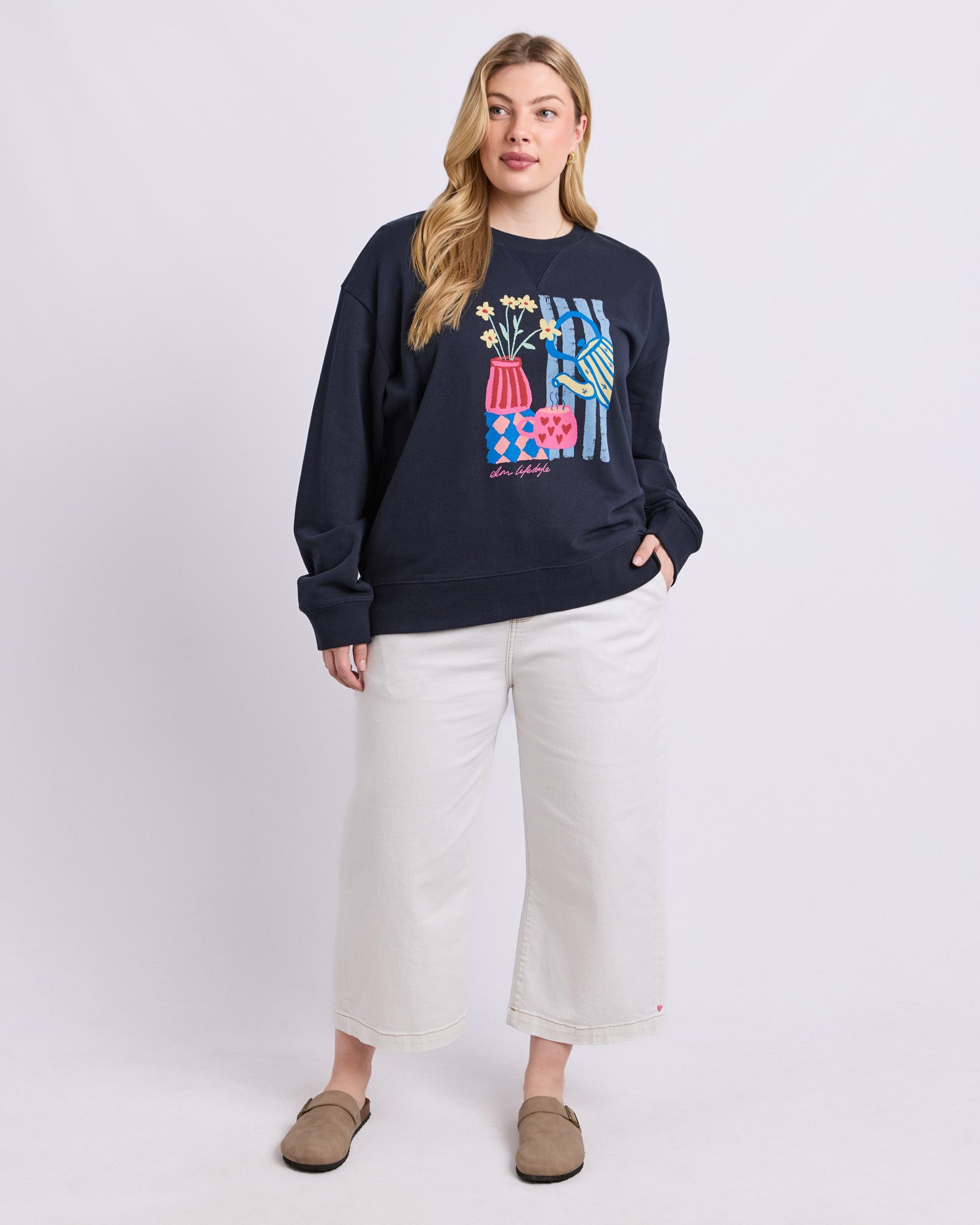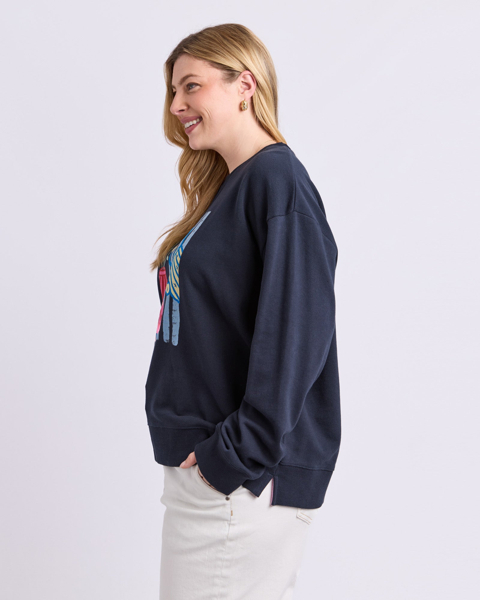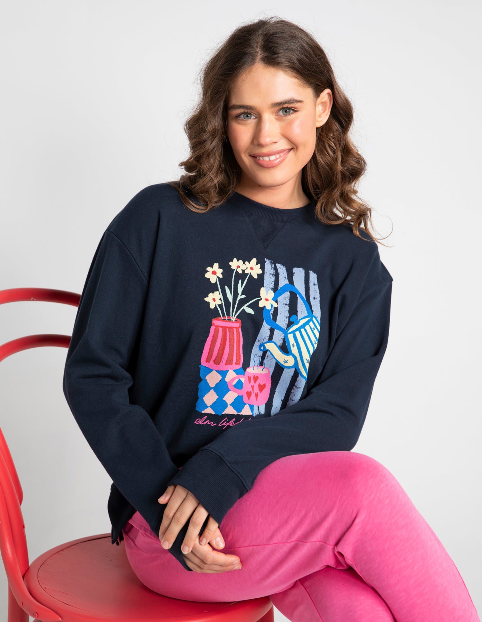 The Elm Fill Your Cup Crew features exclusive Elm artwork for a fun, feel-good everyday layer. Designed in a relaxed fit with side splits and crafted from cotton unbrushed fleece, it’s perfect for casual comfort. Style with denim or relaxed trackpants for laid-back days