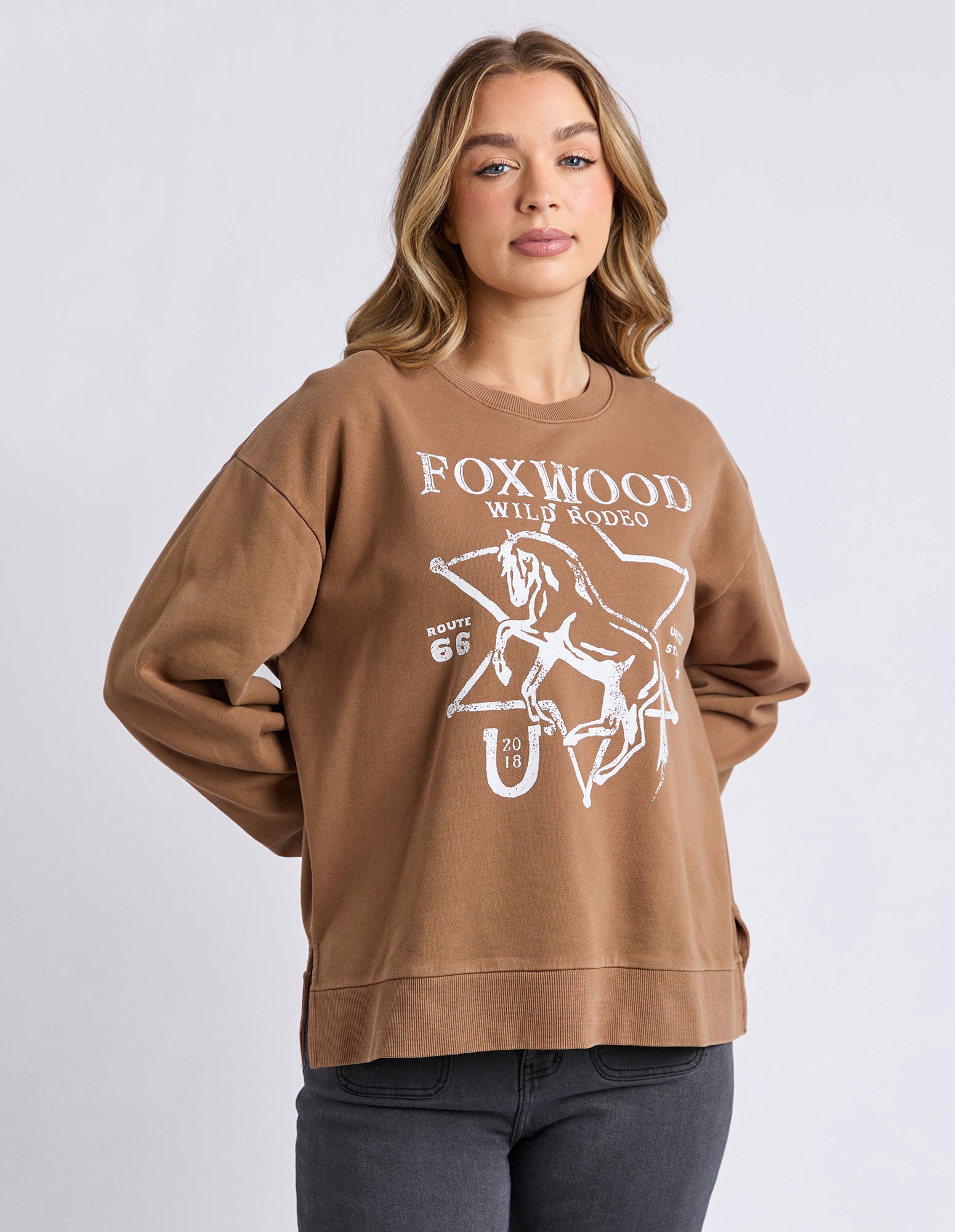 Embrace laid-back style with this relaxed fit sweatshirt, designed for effortless comfort. The toasted coconut hue pairs perfectly with a bold rodeo print across the front, while subtle side splits add contemporary flair. Perfect for casual days when you want to look put-together without trying too hard
