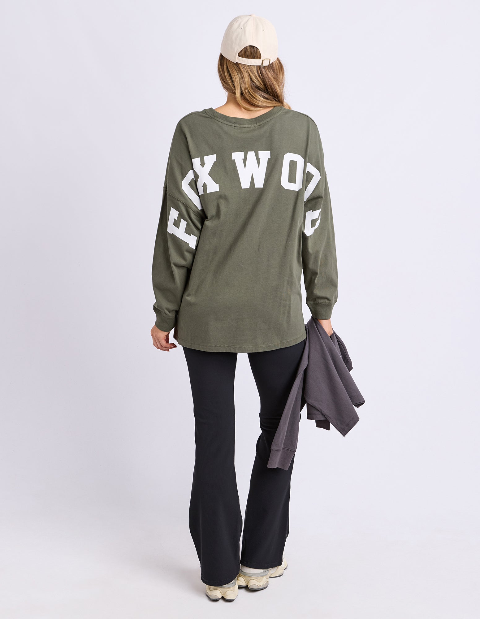 The Interval Long Sleeve Tee delivers understated sophistication with its khaki base and crisp white branding. Featuring prominent Foxwood logos on both front and back, this piece makes a confident style statement while maintaining versatile appeal. The long sleeves provide practical layering capability across seasons, making it an essential addition to any wardrobe