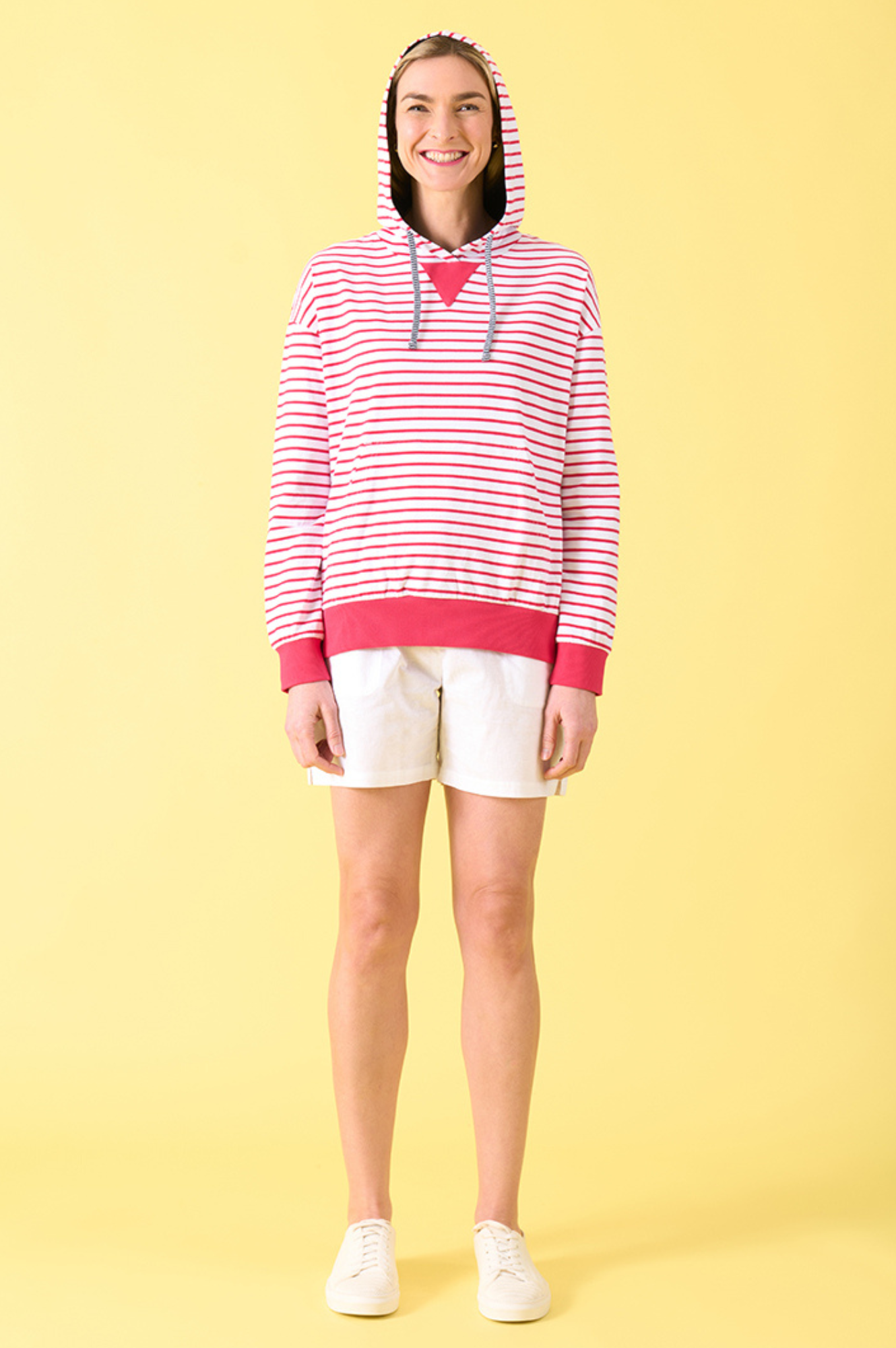 Stay stylish and comfortable with the Albert Hoody in Raspberry/White Stripe. Featuring classic striped design with plain bands and a cozy interior, this hoodie offers both visual appeal and warmth. The adjustable neck tie ensures a perfect fit, making it your go-to layer for casual outings or relaxed days at home