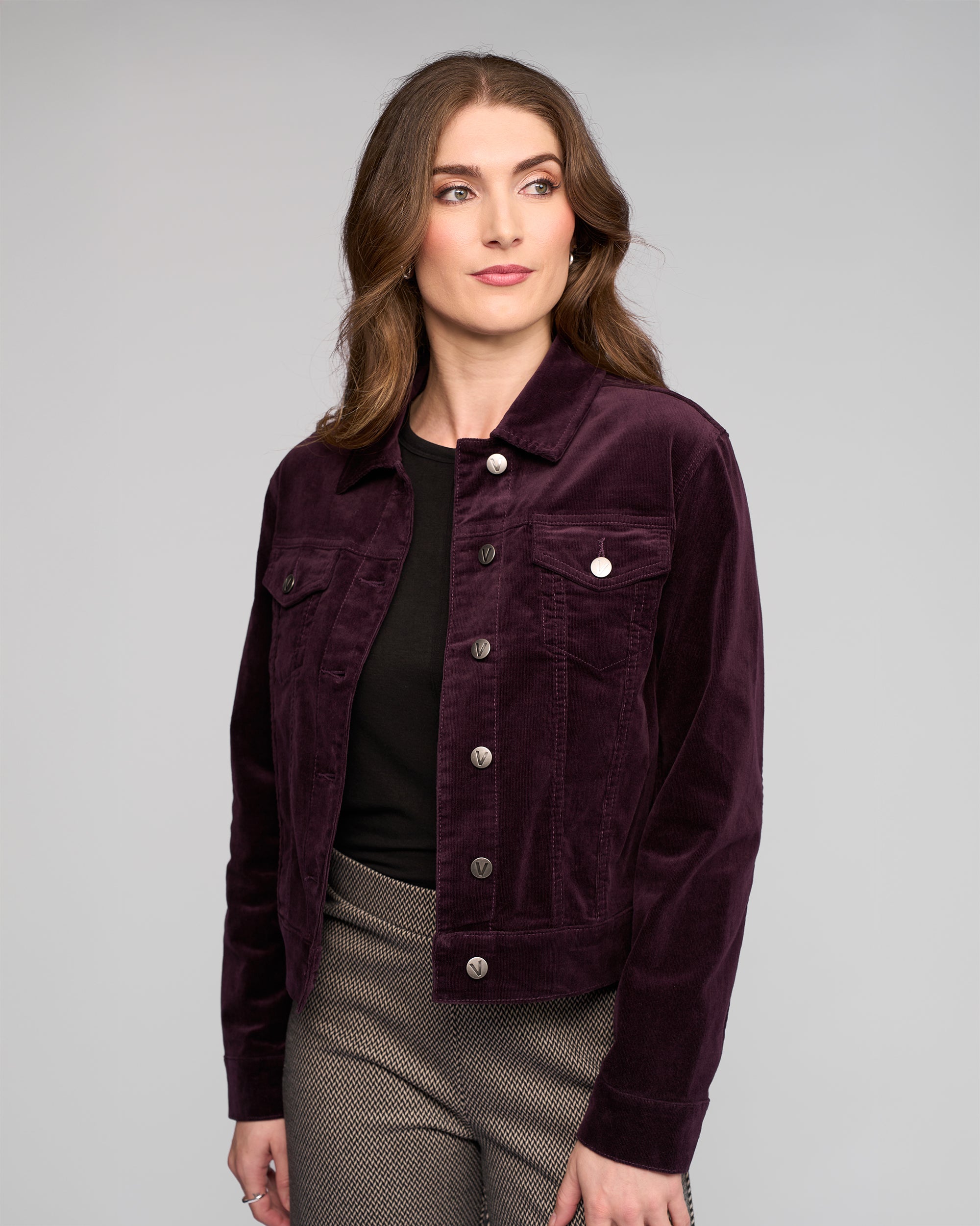 Easy wear throw on and go cord denim jacket style