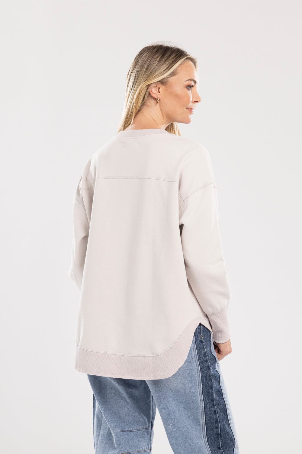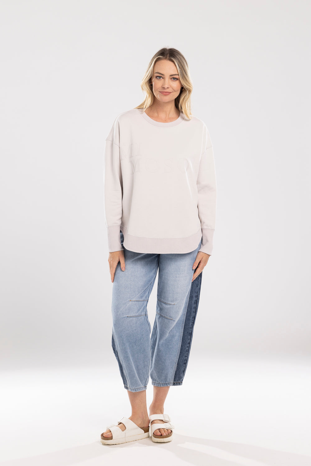This Ena Sweatshirt in taupe features a classic crew neck and subtle tonal Mi Moso branding on the front chest, offering understated style. Its curved hem adds a modern touch, ensuring a flattering fit that moves with you. Perfect for everyday comfort with a refined edge
