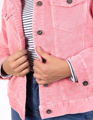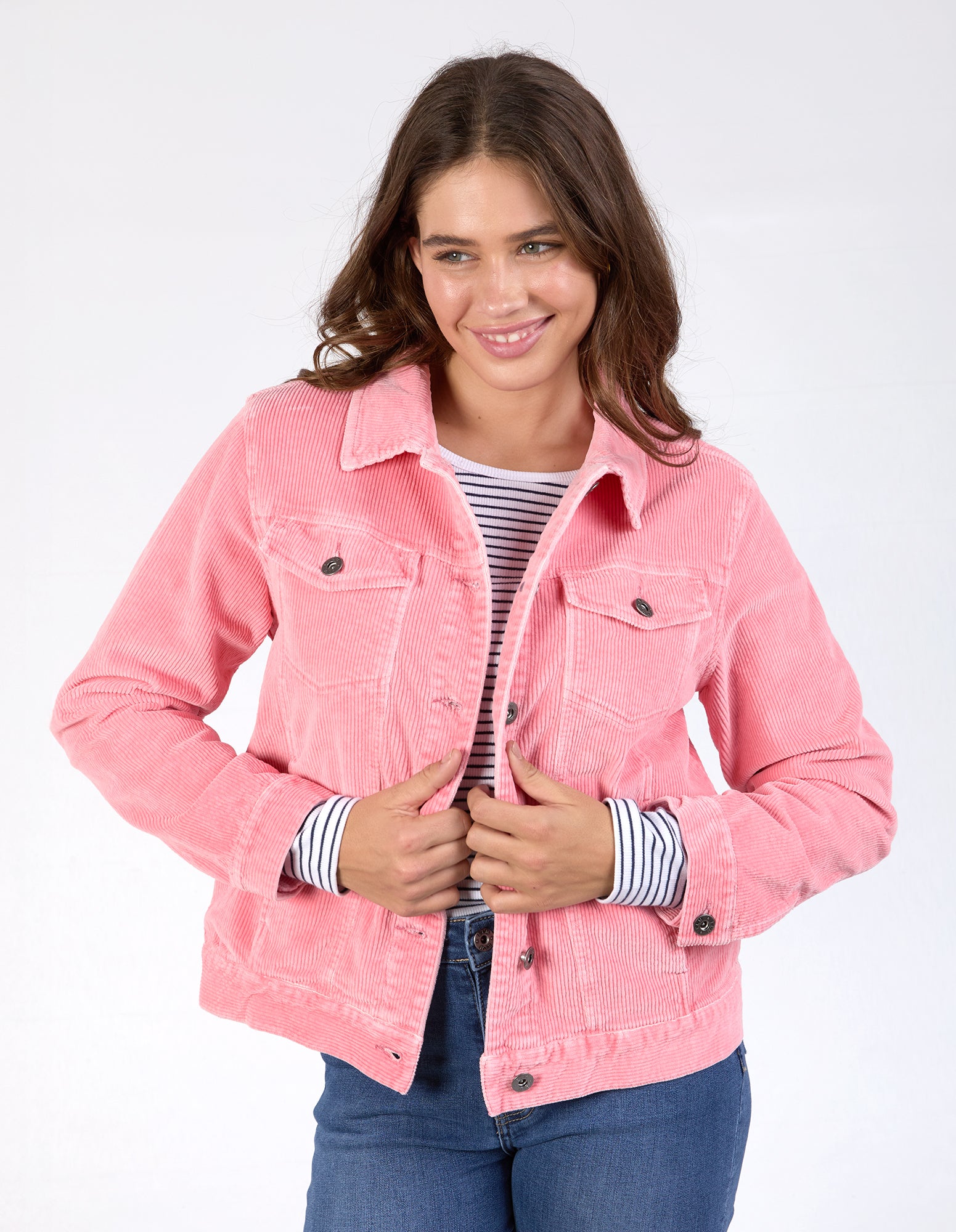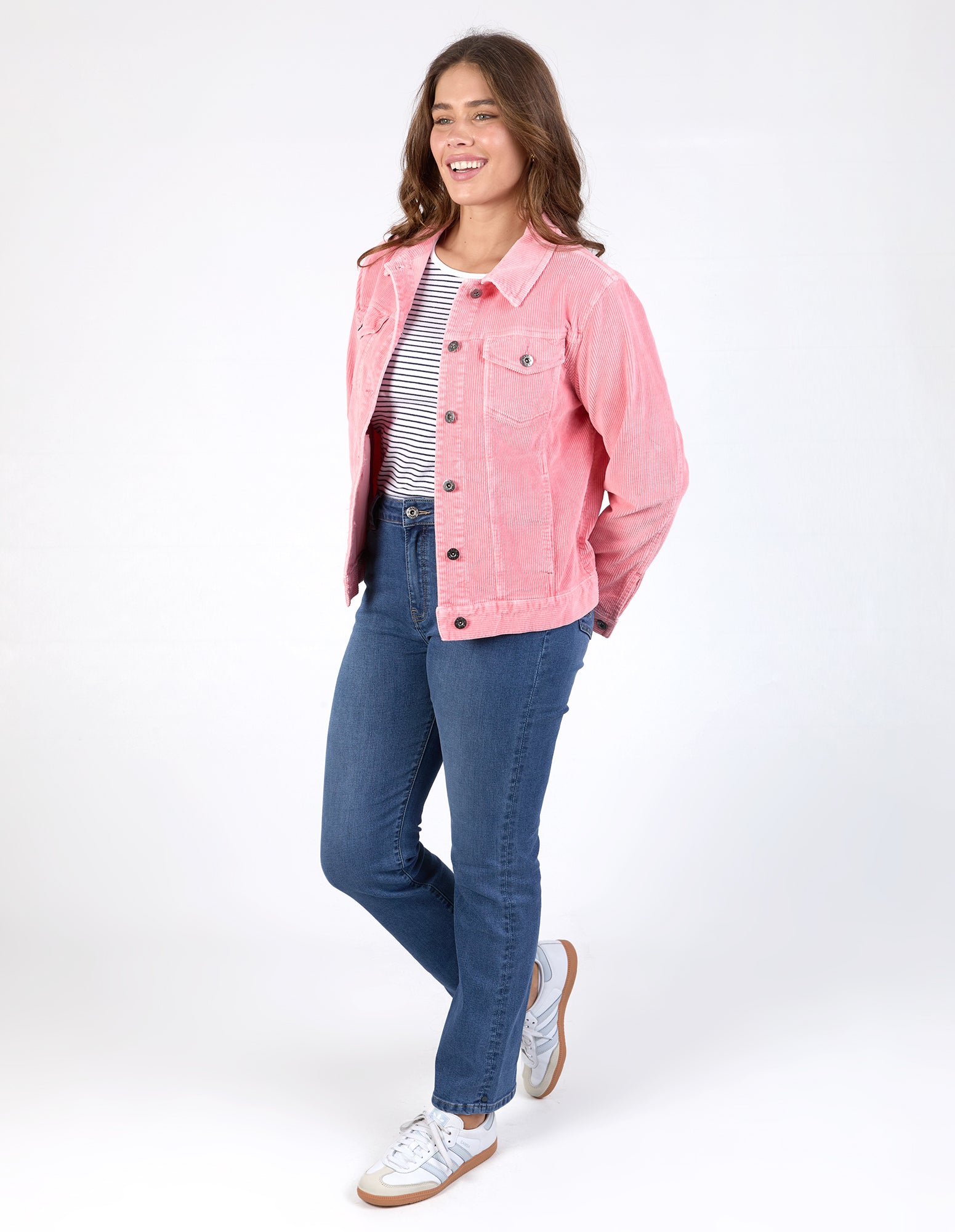 The Fleur Cord Jacket in Charm Pink offers a unique twist on the classic denim jacket with its soft cord fabric. This stylish yet versatile piece is perfect for adding a touch of color to any outfit while providing the comfort and durability of a traditional denim jacket. Add a pop of pink to your wardrobe with the Fleur Cord Jacket