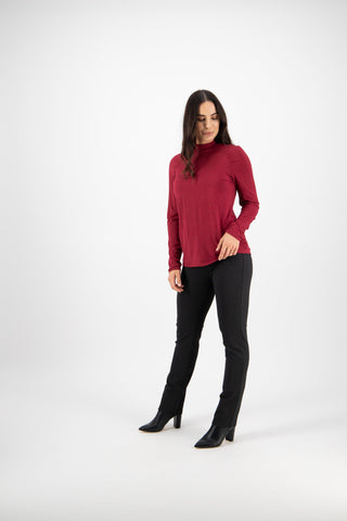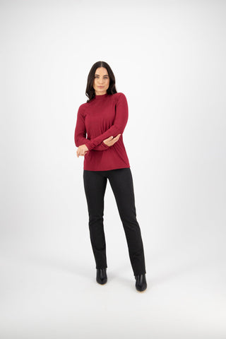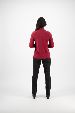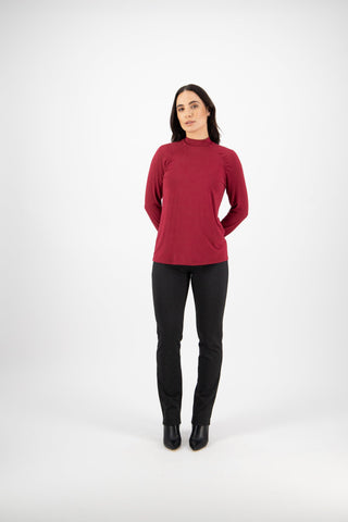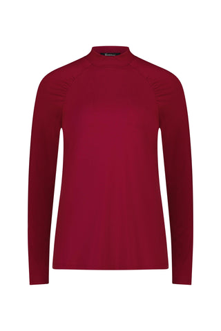 High Neck Top with Gathered Sleeve Detail - Raspberry