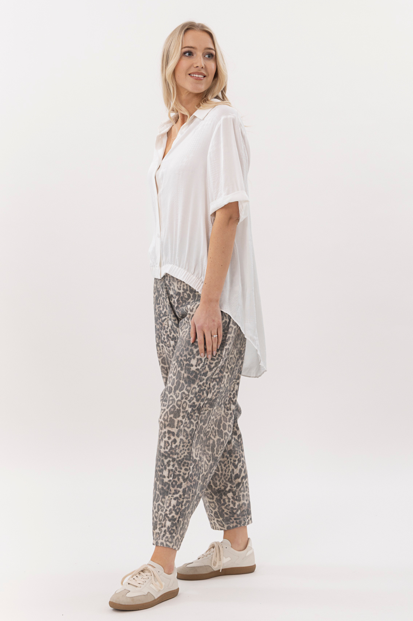 Elevate your denim game with these striking Leopard Barrell Jeans, featuring a bold animal print that turns heads. The fitted waistband ensures a flattering silhouette, while the front zip closure offers effortless styling. Practical pockets keep your essentials within reach. Perfect for those who dare to make a statement, these barrel-style jeans blend contemporary edge with timeless appeal—a versatile piece that works as hard as you do