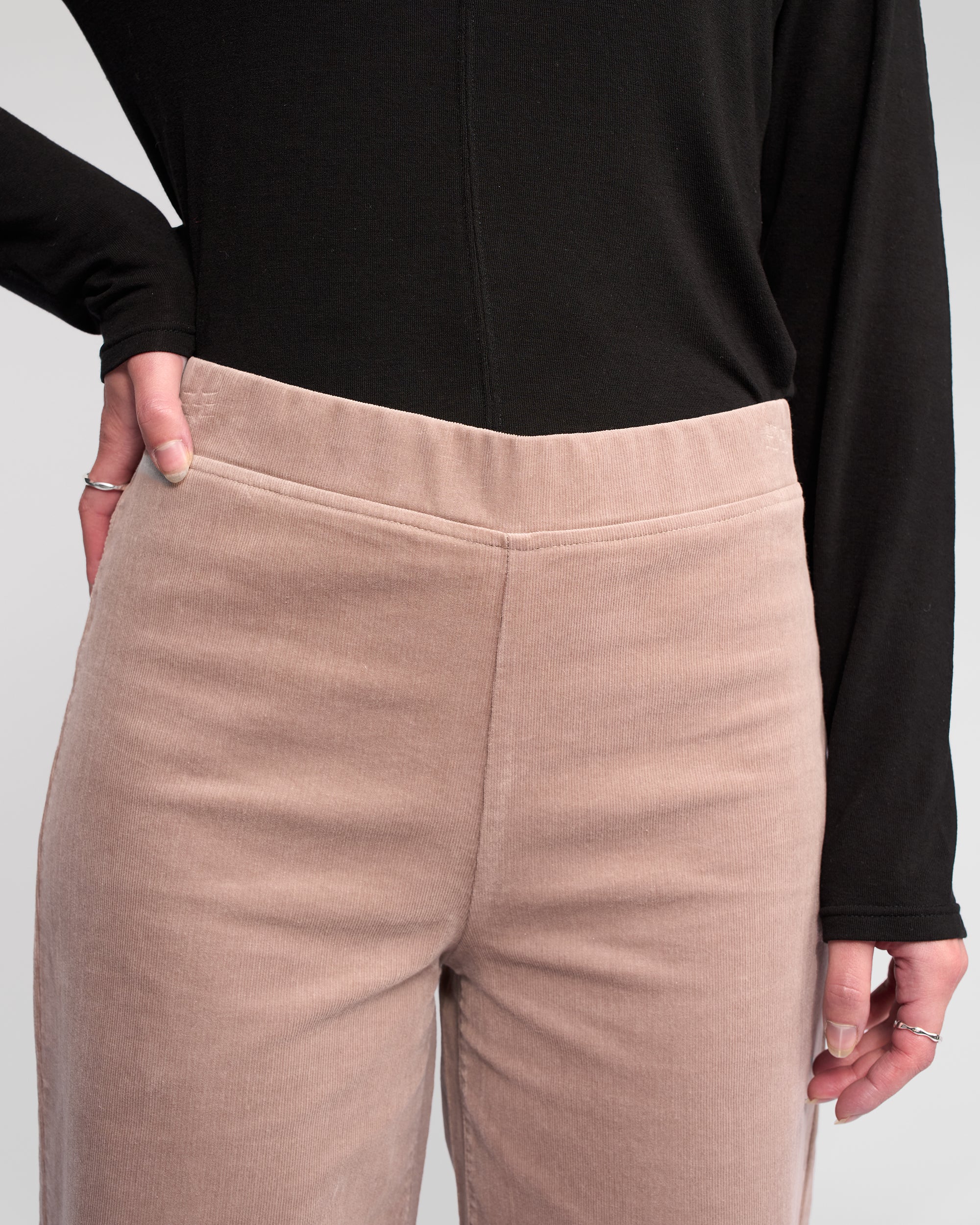 Full-length wide-leg pant in soft stretch pinwale cord, designed in our Twig shade. A pull-on style with an elasticated waistband for a comfortable, easy fit