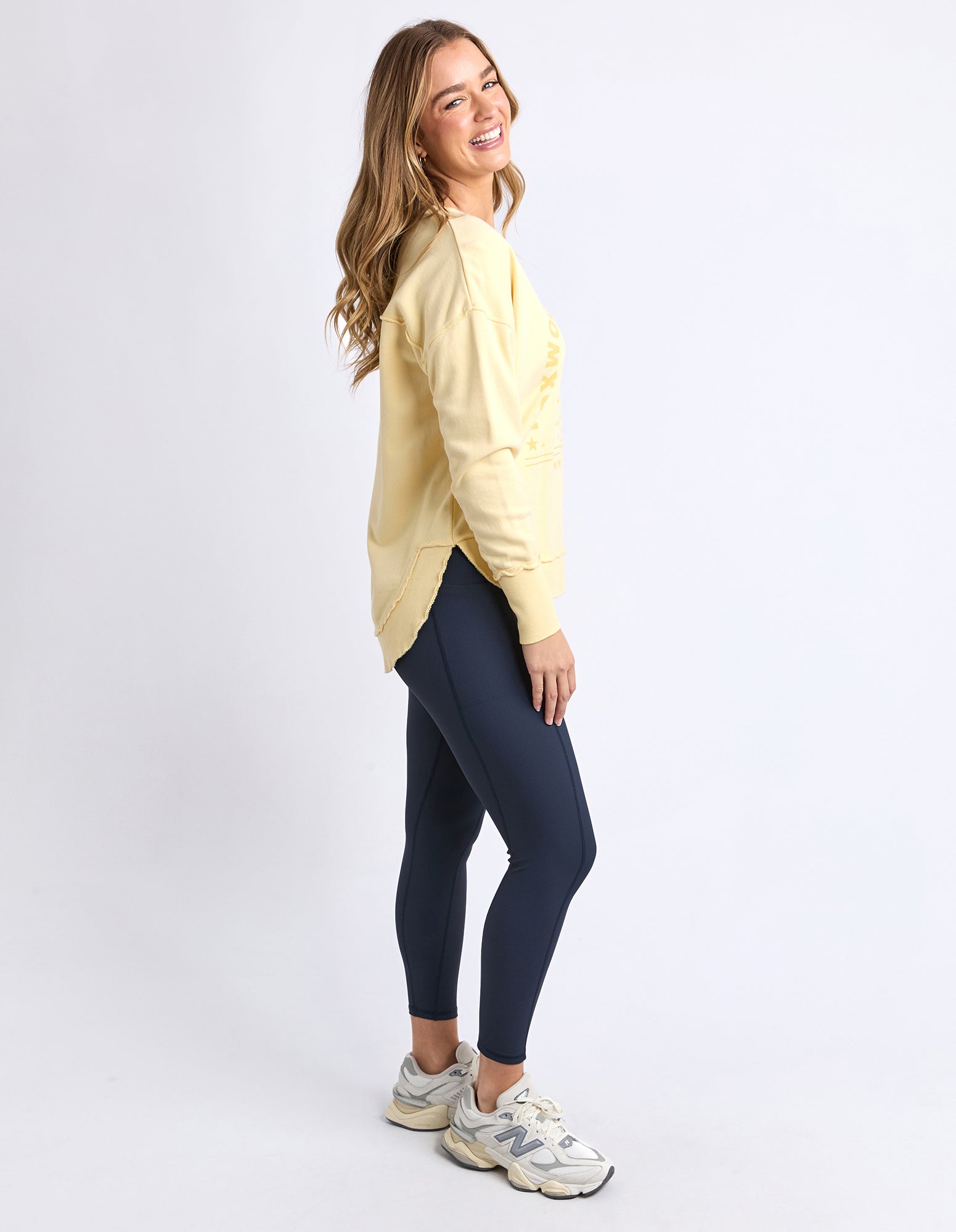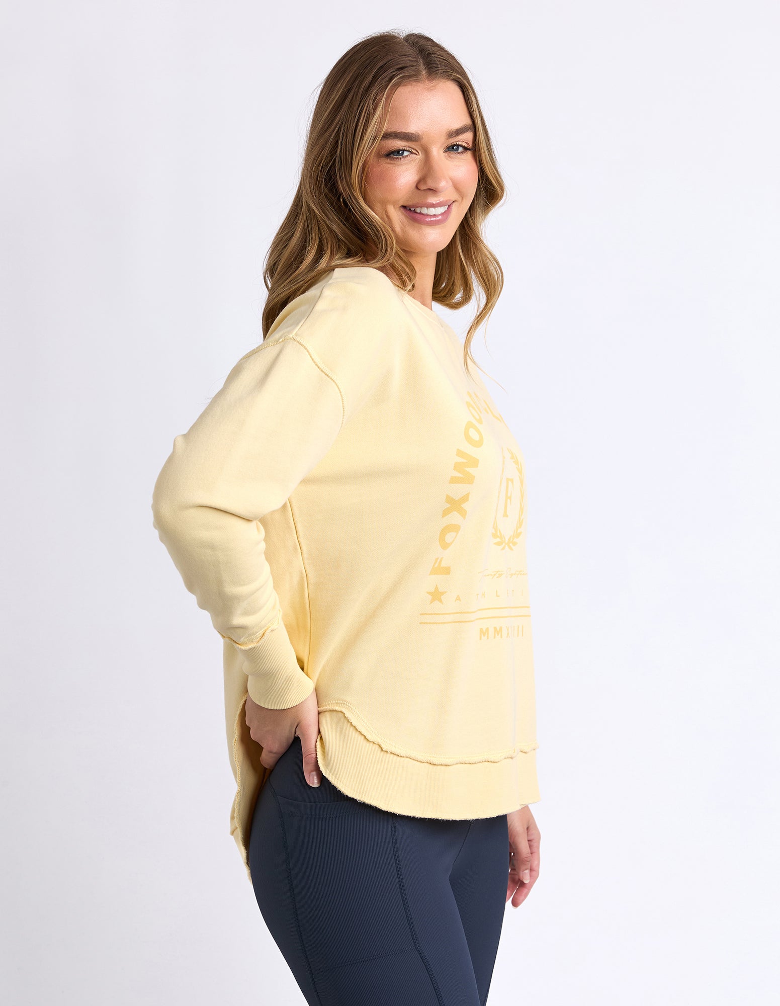 Set to win all the medals—this best-selling Foxwood shape gets a sporty LeisureFit upgrade. Featuring a tonal chest graphic and edgy raw seams, this vintage-washed crew is your everyday champion. Comfort meets cool in lemon.