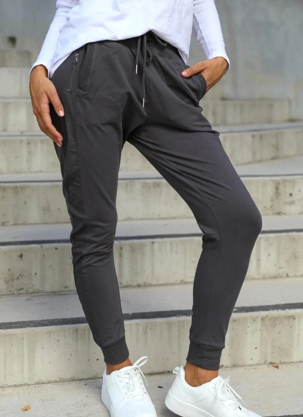 Expertly crafted Rio Joggers in versatile charcoal. Features a unique side panel design for a modern touch. Perfect for any casual occasion. Made with premium quality materials for ultimate comfort and durability. Upgrade your wardrobe with these stylish and functional joggers