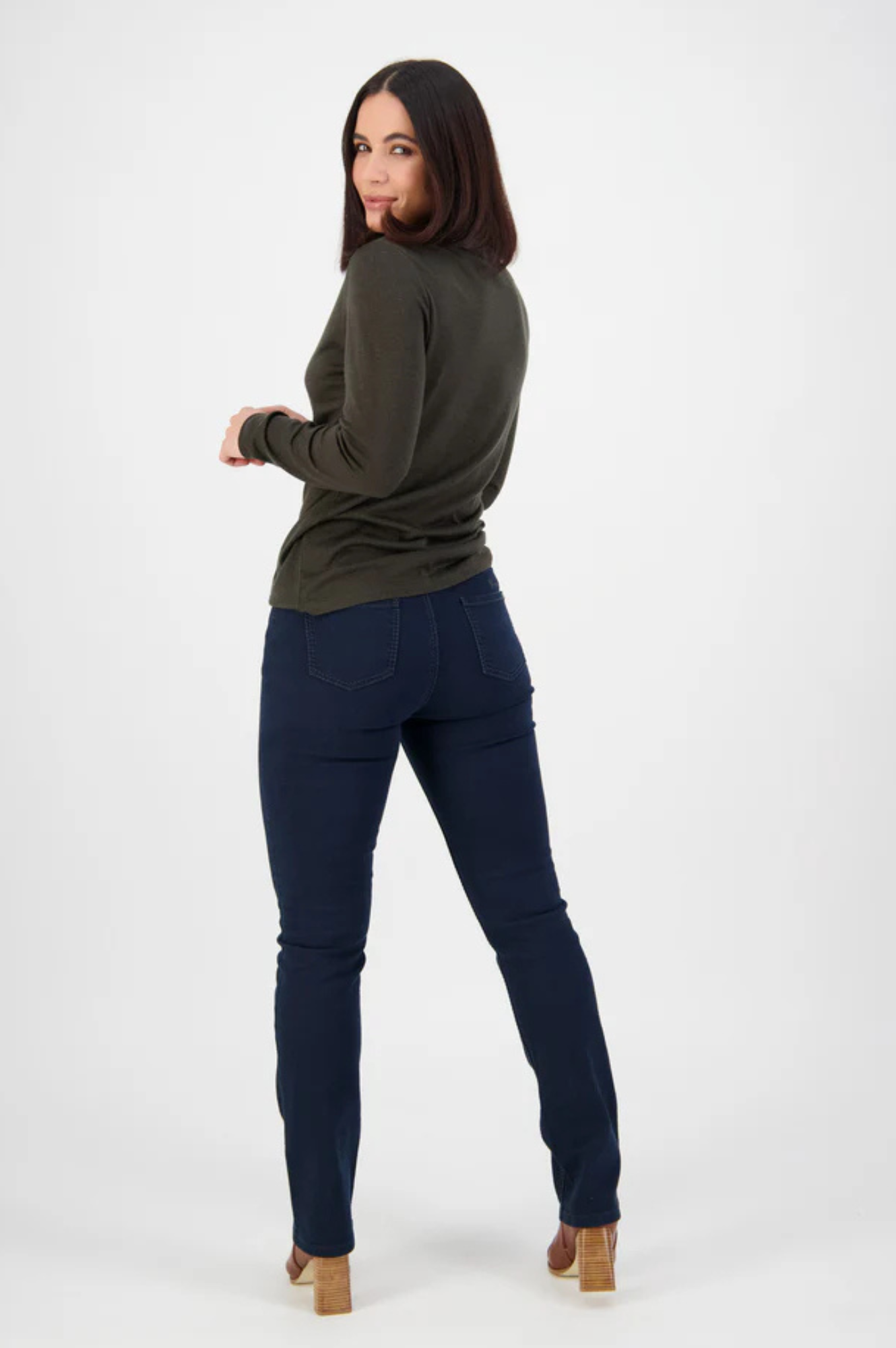 • High rise slim leg jean made from stretch fabric for the perfect fit