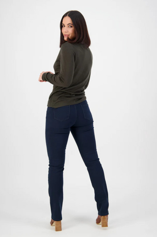 Introducing the Vassalli Slim Leg Full Length Jean with Heavy Top Stitch in Indigo Denim. Crafted with precision, this jean features a slim leg design and heavy top stitching for a chic and polished look. Made from high-quality indigo denim, it offers both style and durability
