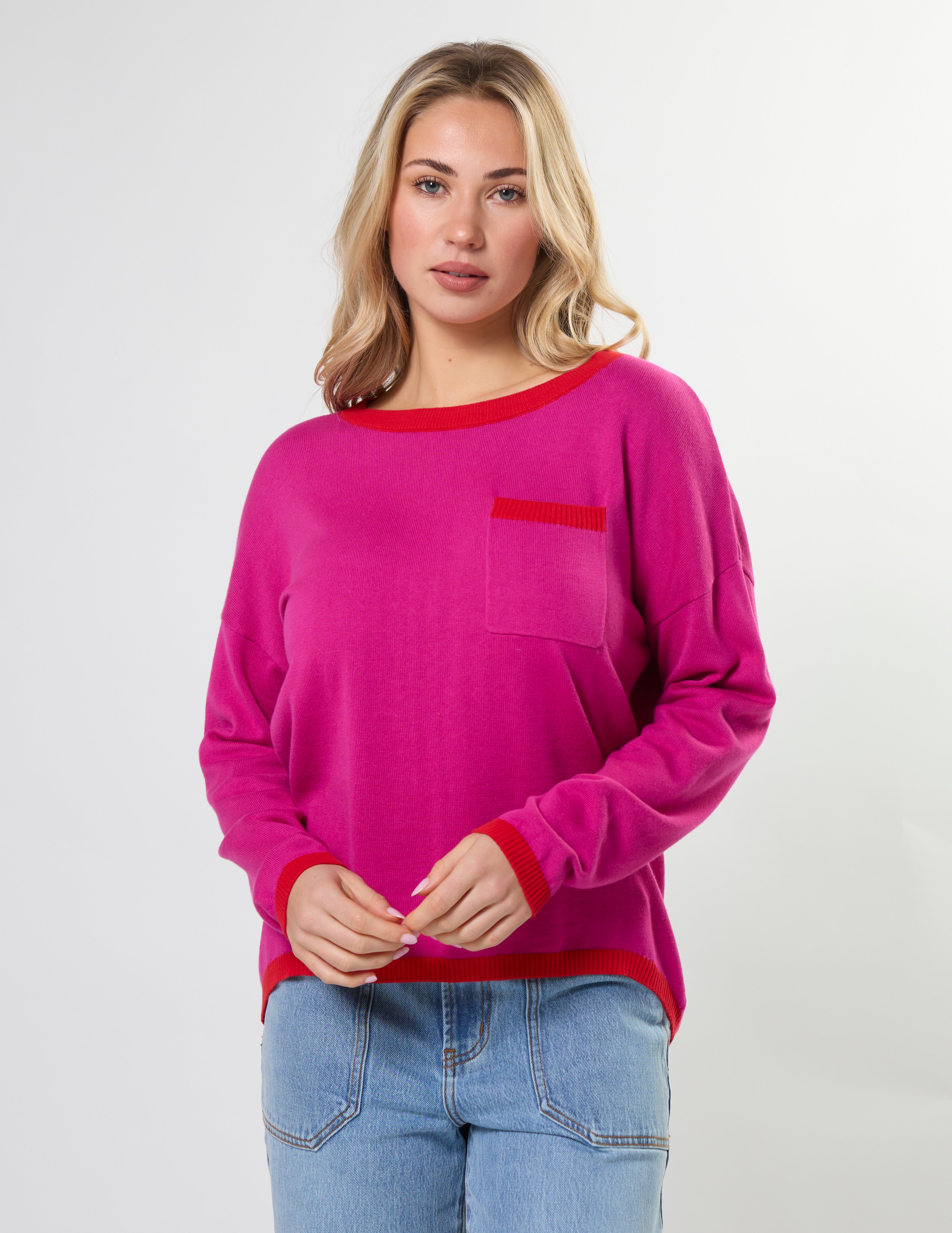 Effortless style meets comfort in this street-ready jumper. Crafted from lightweight jersey knit, it features a relaxed crew neck, handy chest pocket, and those cool dropped shoulders that make everything feel more laid-back. The contrast colour trims add a cheeky pop of personality, while the slightly hi-lo hemline keeps things interesting
